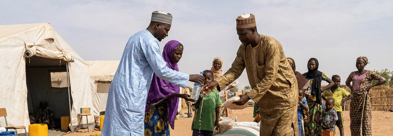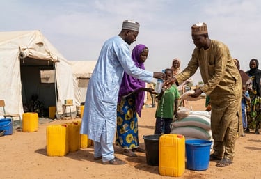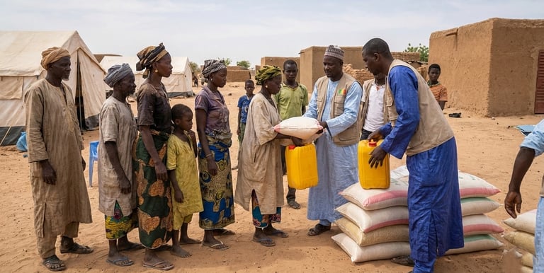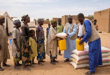 Distribution de vivres et assistance aux populations déplacées en situation d'urgence.
